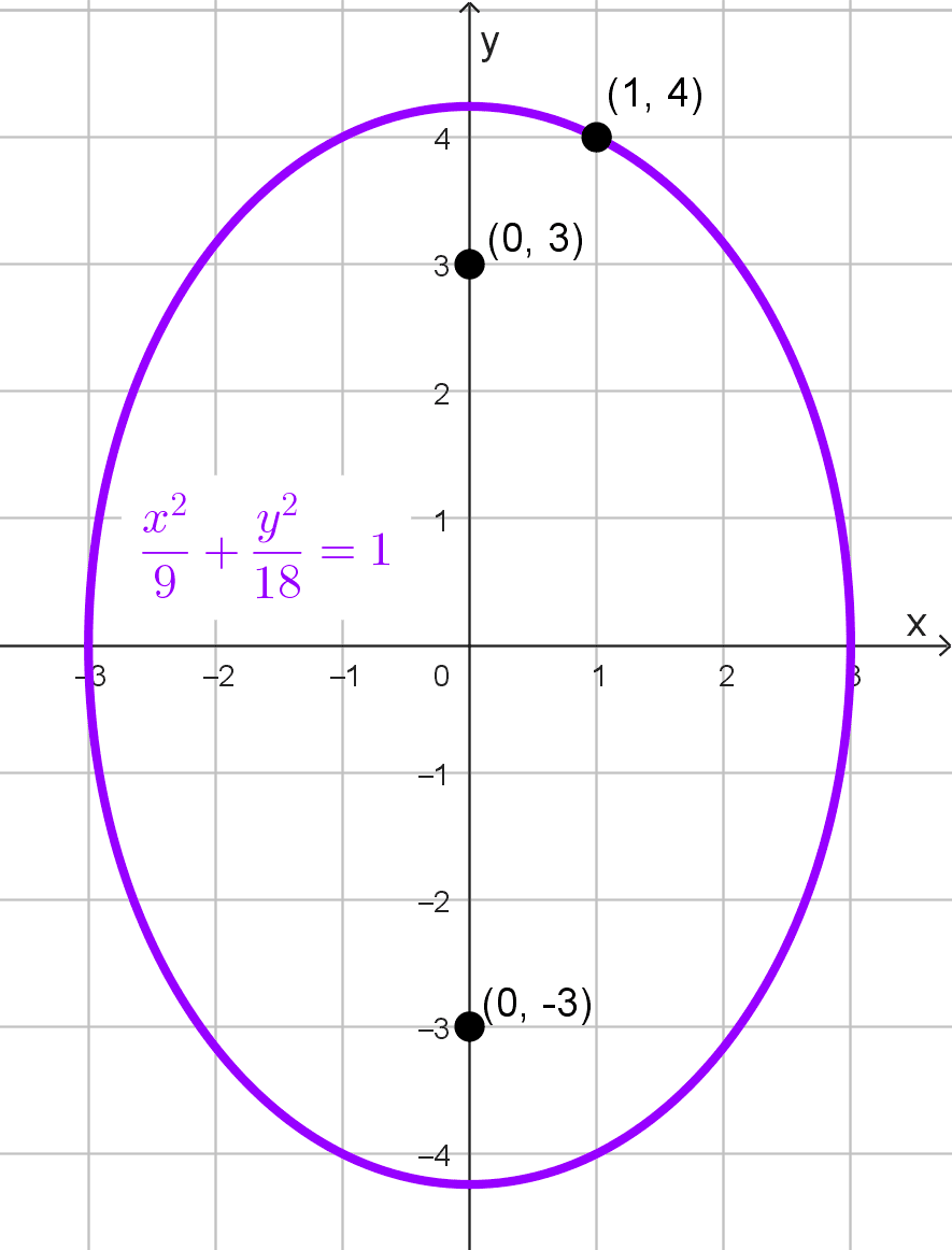 \(\dfrac{x^2}{9}+\dfrac{y^2}{18}=1\)
