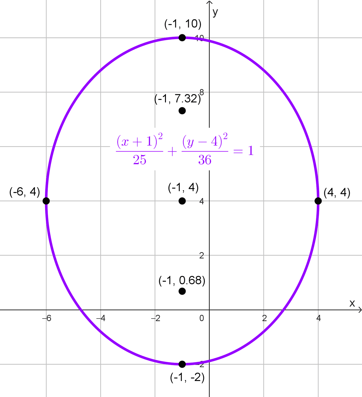 \(y=\sqrt{36 \left(1-\dfrac{4^2}{100}\right)}\)