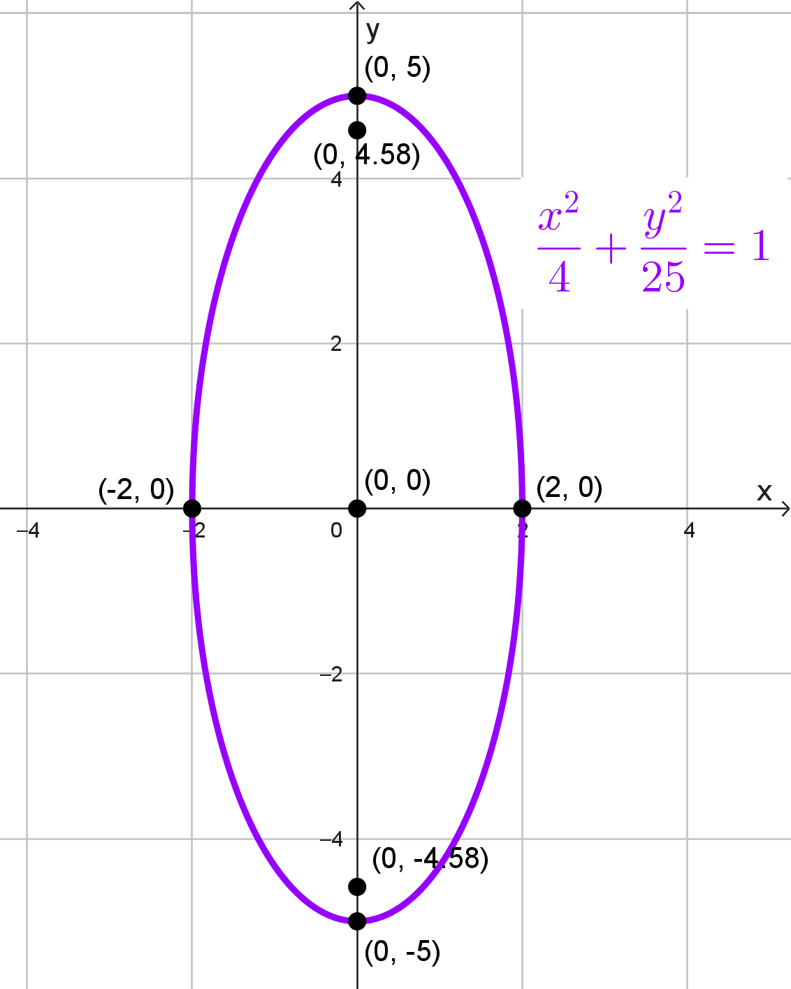 Dado que los focos están sobre el eje y, la elipse es vertical. Su ecuación canónica tiene la siguiente forma: