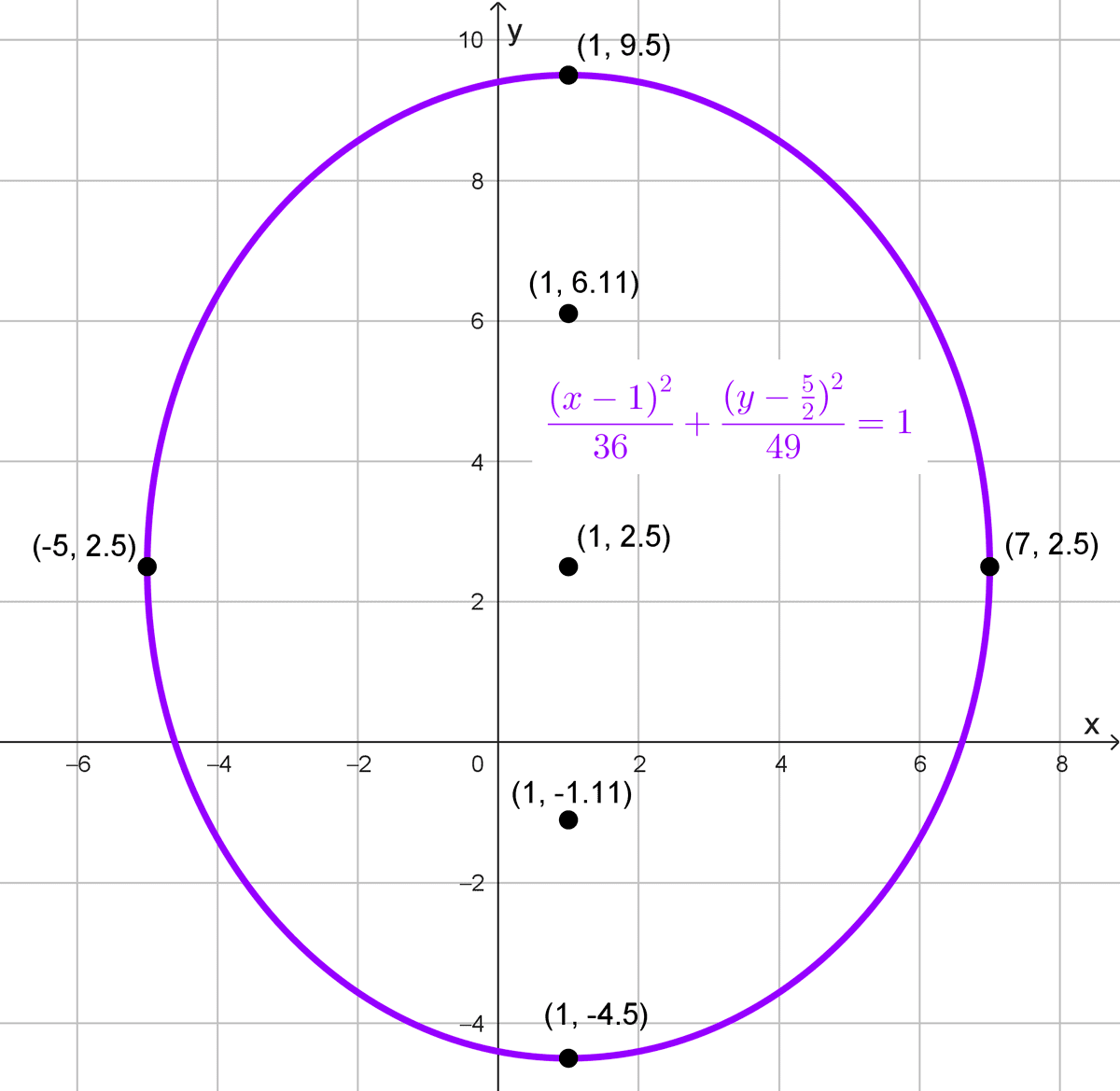 \(\dfrac{x^2}{10^2}+\dfrac{y^2}{6^2}=1\)