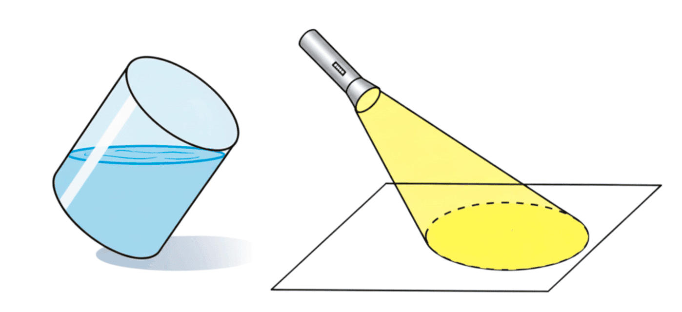 Otro caso curioso se da con una linterna que ilumina una pared inclinada. Aunque el haz de luz salga en forma circular, al chocar con una superficie oblicua la mancha luminosa se transforma en una elipse. Este fenómeno se debe al mismo principio: un cono de luz que intersecta un plano inclinado siempre genera una figura elíptica.