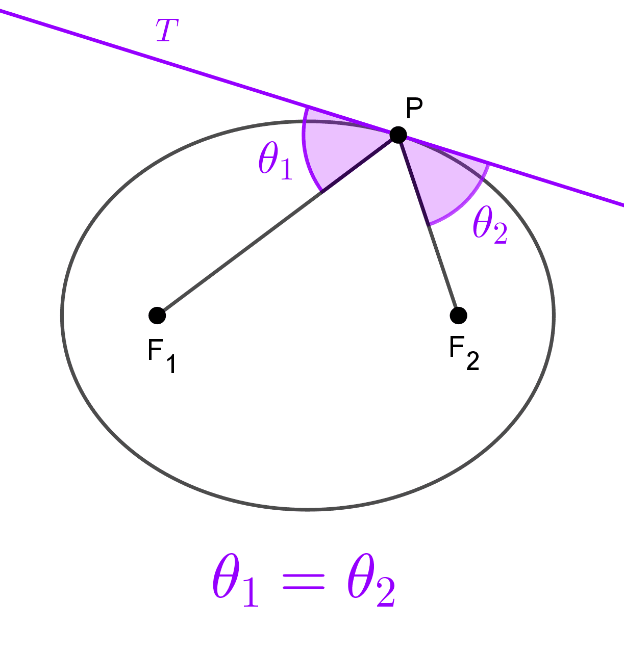 Existen mesas de billar elípticas que aprovechan la propiedad reflectiva de la elipse: si una bola se lanza desde un foco, tras rebotar en los bordes siempre terminará en dirección al otro foco. De este modo, se puede diseñar una mesa con un agujero ubicado en un foco y garantizar que cualquier tiro iniciado desde el otro llegue directamente a ese punto, como se muestra en el siguiente video.
