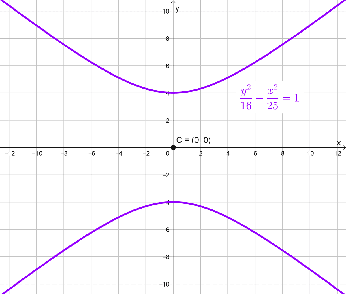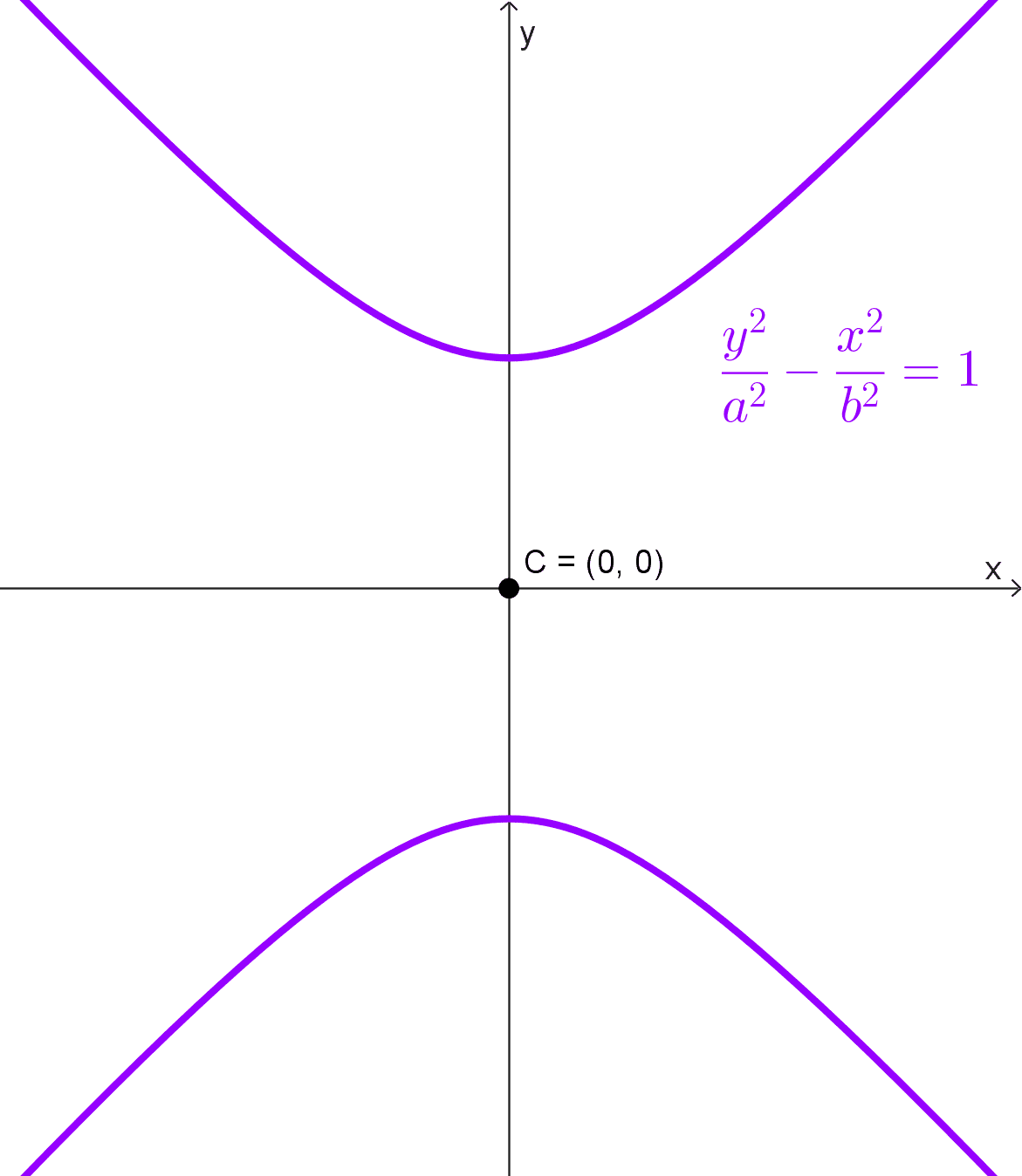 Hipérbola vertical: \(\dfrac{y^2}{a^2}-\dfrac{x^2}{b^2}=1\)