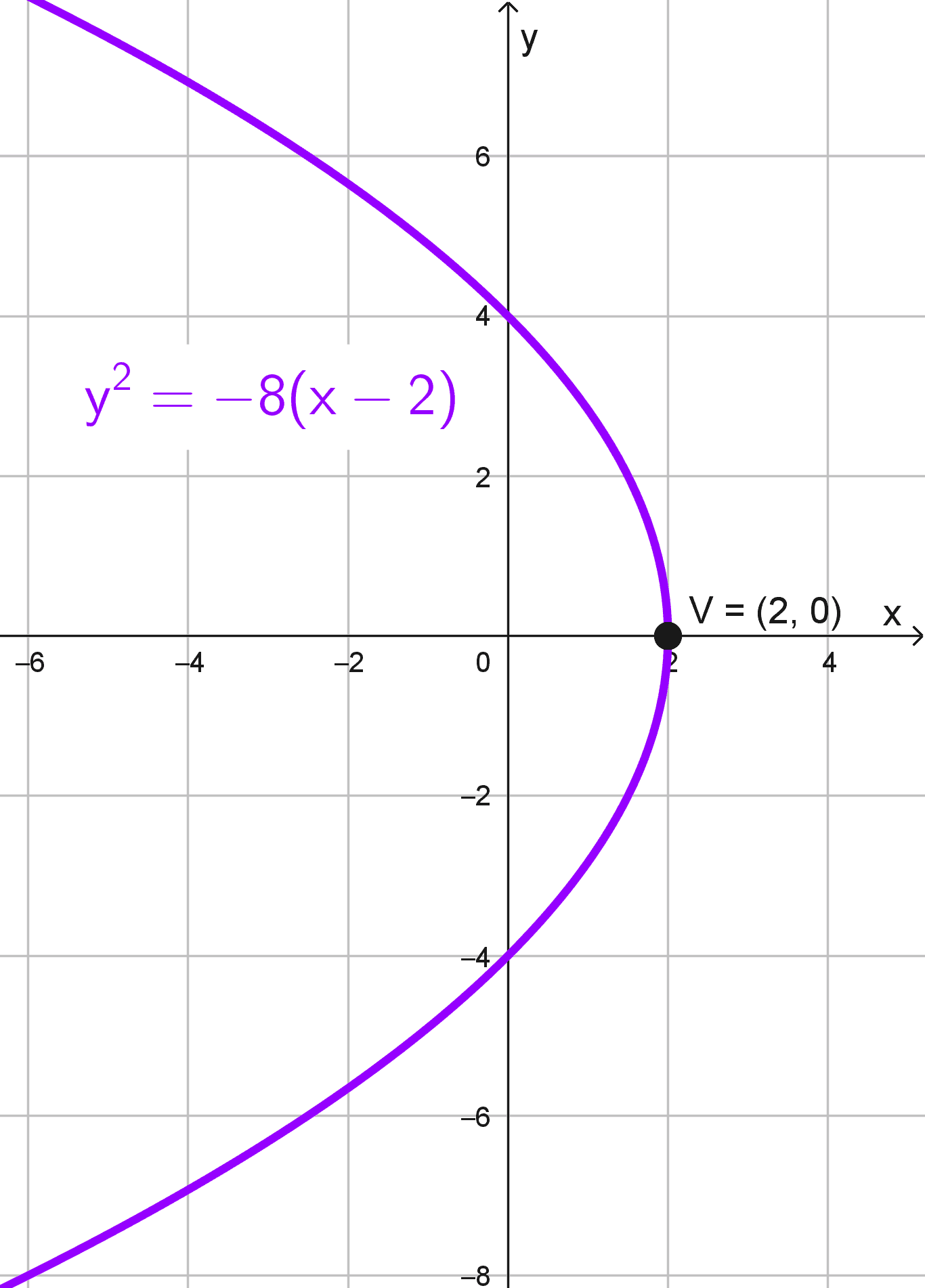 - \(y^2=-8(x-2)\)