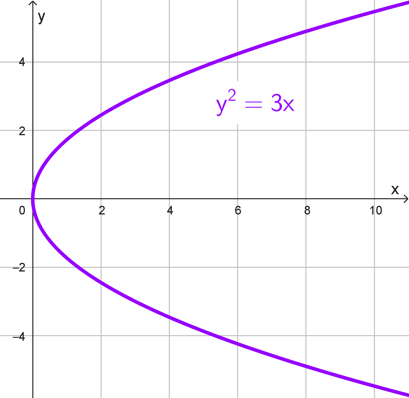 - \(y^2=3x\)