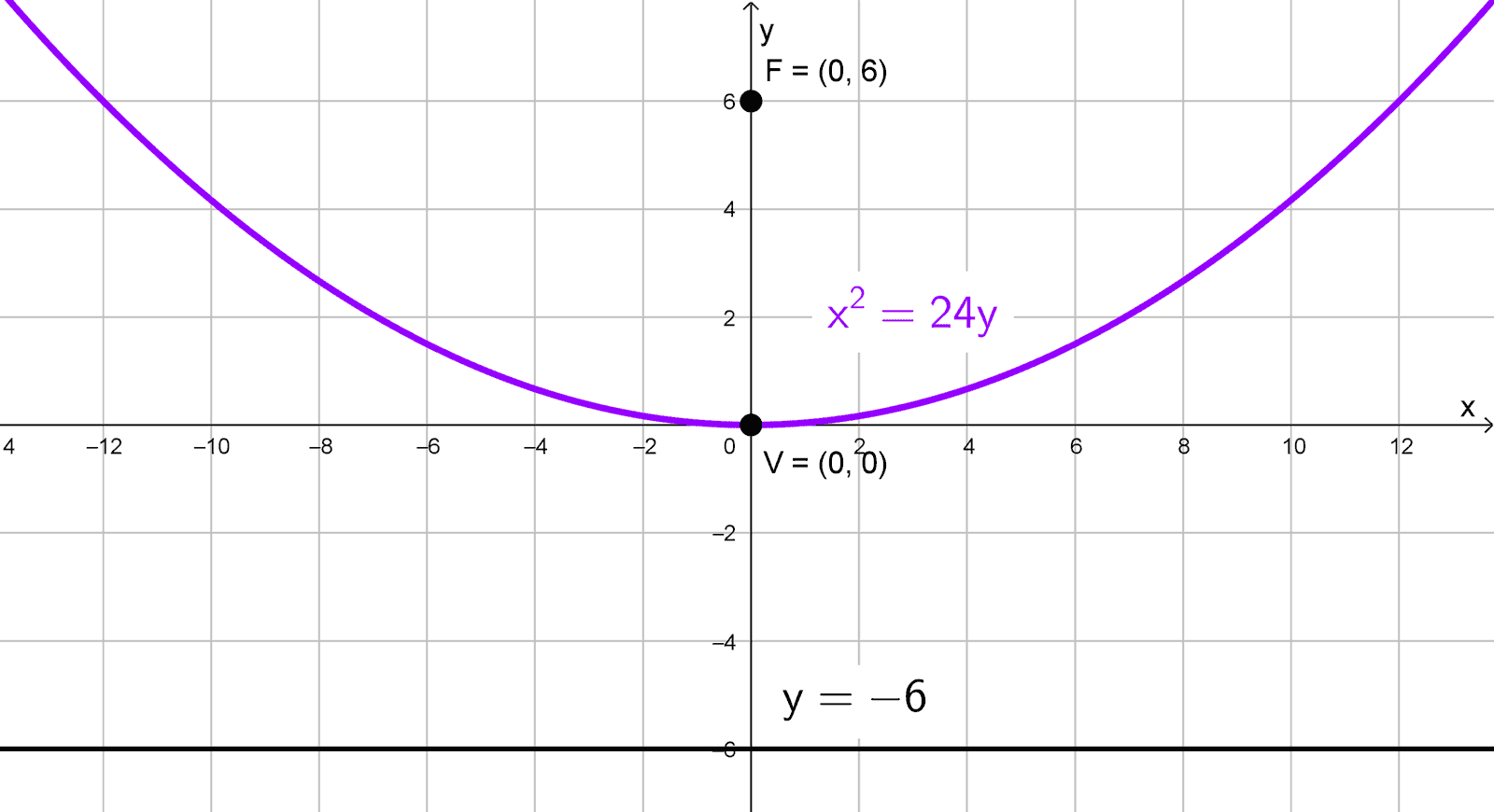 Determinar la ecuación de la parábola con vértice en el origen y directriz y = -6.